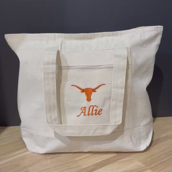 University of Texas Personalized Custom Embroidered 19L Canvas Tote Bag with Zipper Closure